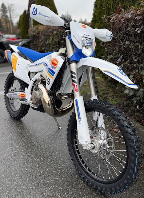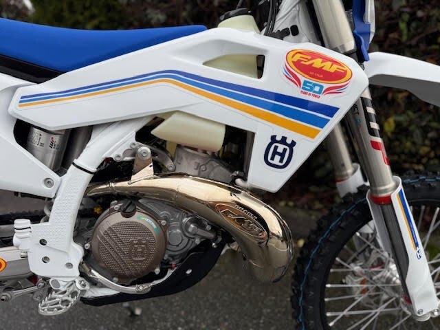 | Go where few have gone before with the TE 300 FMF Heritage model. Based upon the machine of choice for hard enduro riders worldwide, the Heritage machine is finished with a distinctive look created by the unique graphics, together with blue radiator shrouds. High performing, reliable components include the Brembo clutch and brake systems, Full FMF Exhaust, FMF Heritage Decals while a combined start and stop switch keeps weight to a minimum and simplifies starting and stopping. With a light, agile chassis and plush WP XACT suspension, the superior rideability of the versatile machine is never in question. |