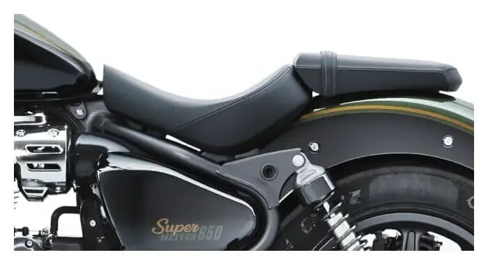 The spacious, teardrop tank on the Super Meteor 650 can carry up to 15.7 liters of fuel, ensuring that even the longest of rides continues uninterrupted. |